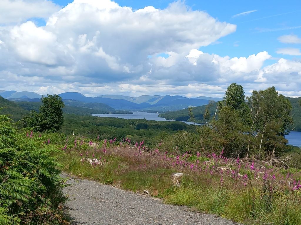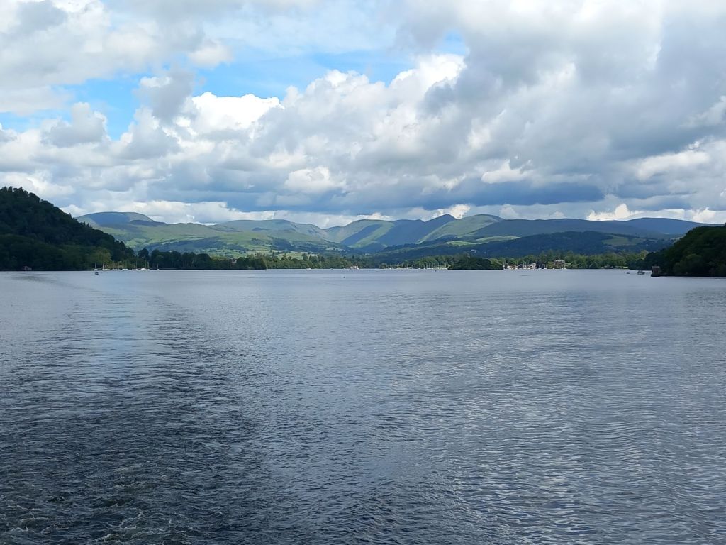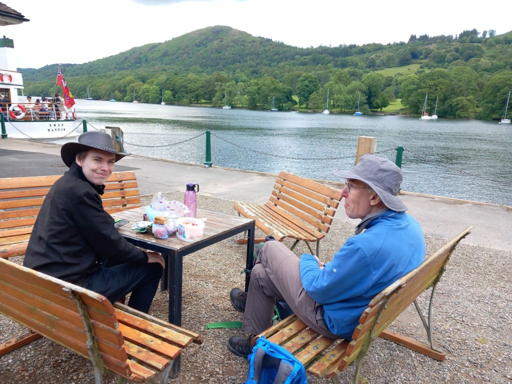 We had nearly an hour before the return boat trip, so we wandered over Great Knott and picked up a couple of geocaches. The top had been devastated by storm Arwen in 2021, but it meant you could see the views up the lake.