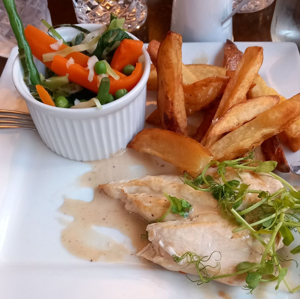 But the weather looked threatening, and we were a bit frazzled, so we ate in the hotel rather than going further afield. And very nice it was too!
