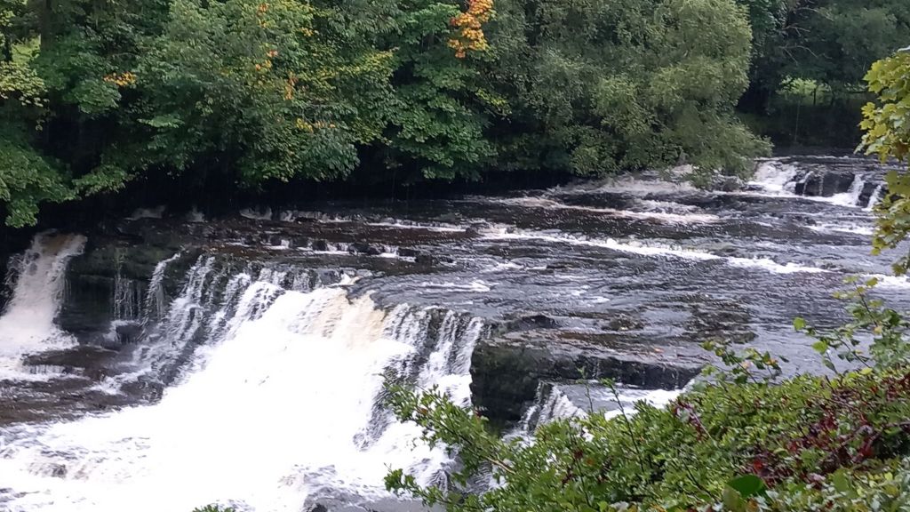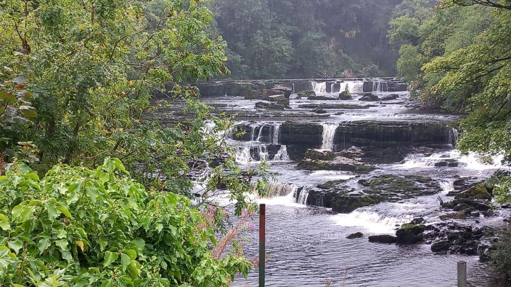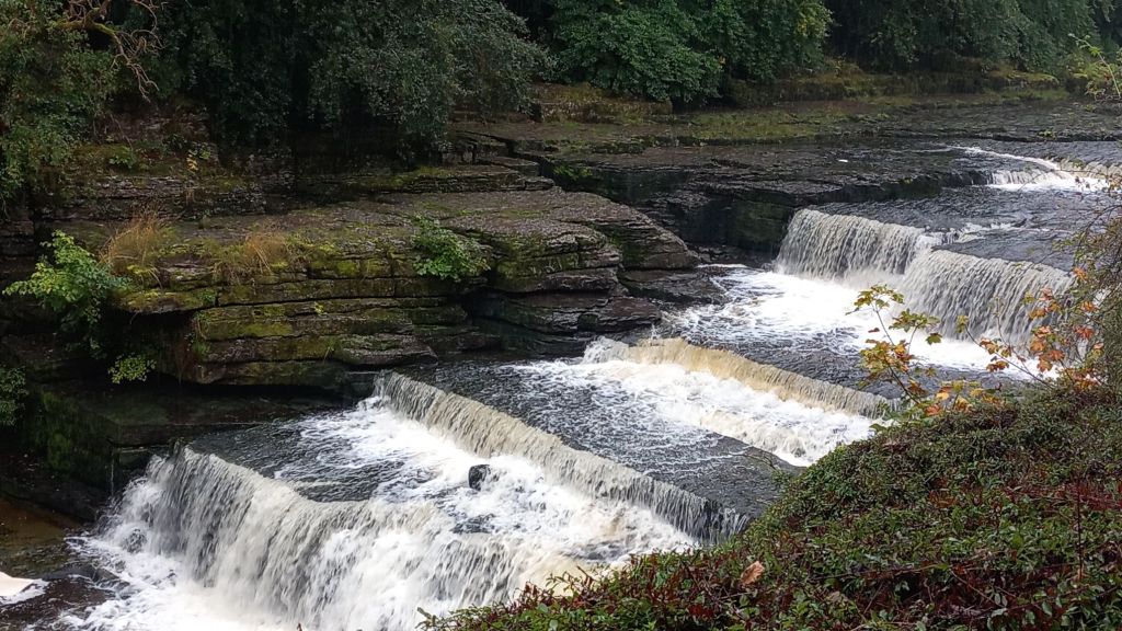 We headed back along the river to the car park. The cafe was still open for tea & cake, then we crossed over and looked at the falls properly, from the other side.