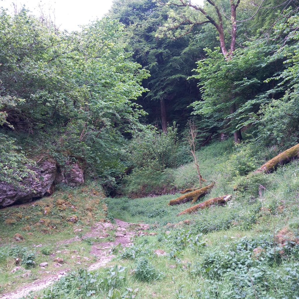 Soon we turned to walk alongside the river Wye, and then up and over Wormhill. At one point a farmer had festooned electric fencing across the paths, which meant a bit of a detour, but soon we were back on track to the top of Monk’s Dale.