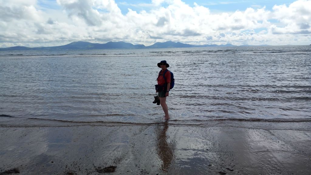 We walked back along the east side of the island back to the main beach, where Mary immediately took off her boots and paddled all the way along.